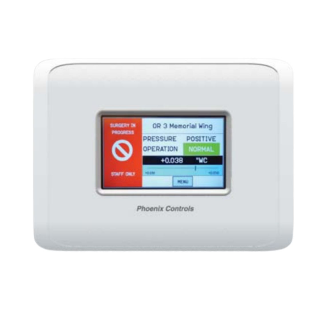 Monitor de medición de presión diferencial con display de 4.5″, rango de +/- 0.05″W.C. (+/- 12.45 Pa), exactitud de +/. 0,5%, señal de salida análoga seleccionable 0-5vdc, 0-10vdc o 4-20mA, salida digital de relevador de alarma, 2 entradas análogas multi propósito, 1 entrada digital, Alimentación 24vac. Marca Phoenix Controls